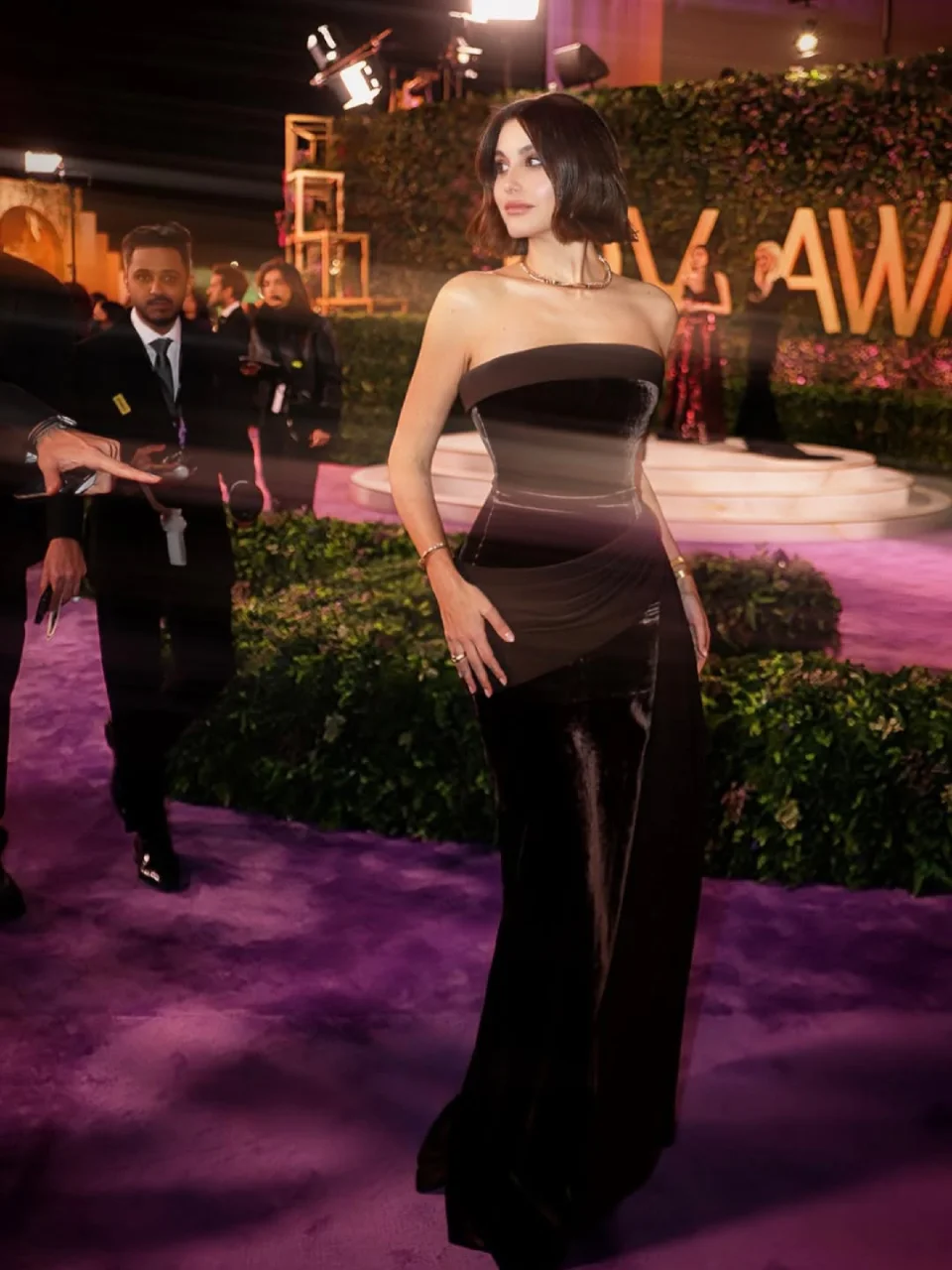 Voluminous gowns adorned with corsets that cinch waists and skirts, gracefully flowing capes, asymmetrical cuts, and meticulous drapings, make up the 32 pieces of Les Miroirs. Holographic materials create dazzling illusions and rainbows solely through reflections. Recycled plastic and PVC add depth to the designs.