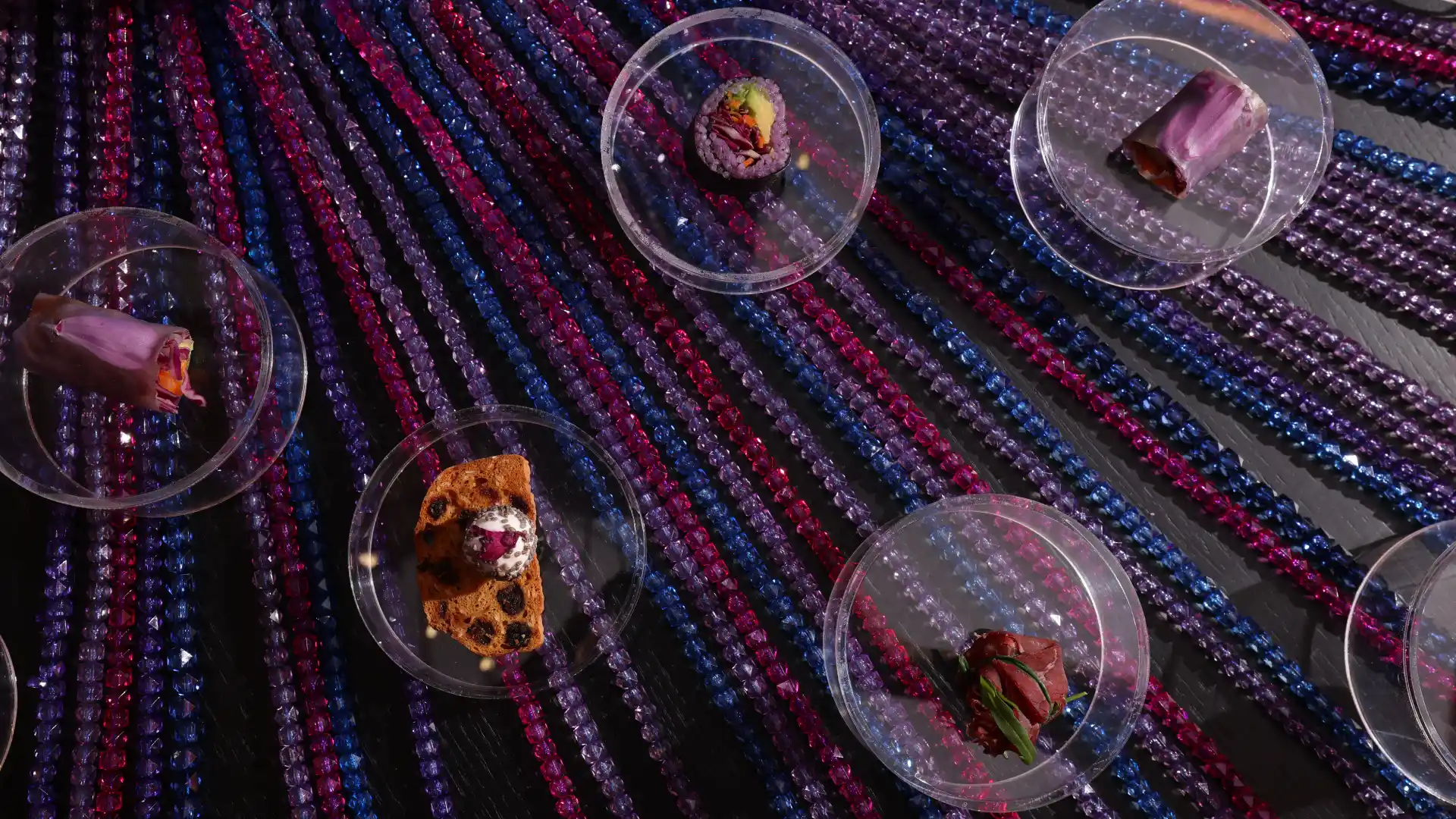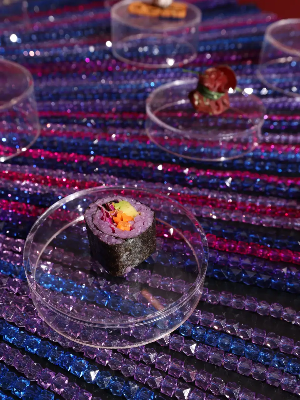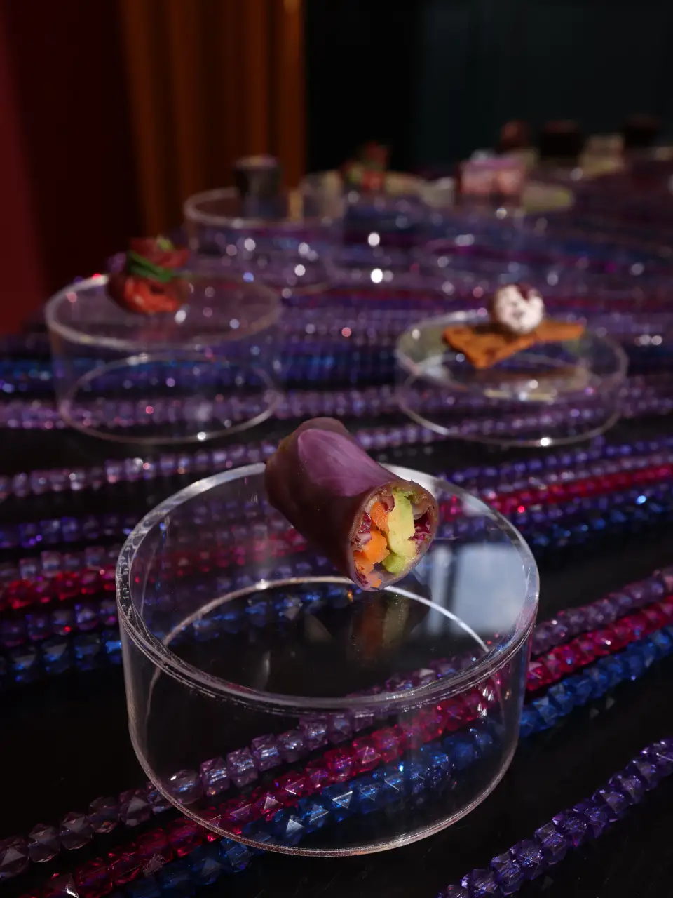 The evening’s catering was inspired by the beadwork featured in the artworks, with a creative menu curated by Healthy Mess. The presentation echoed the collection’s intricate details, transforming food into an extension of the exhibition’s artistic narrative.